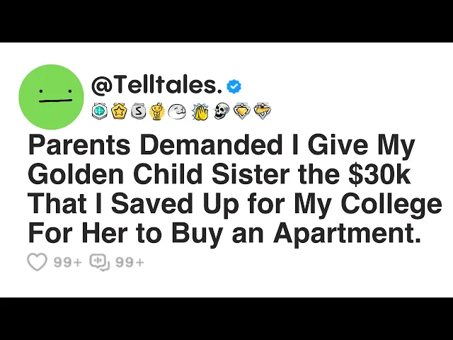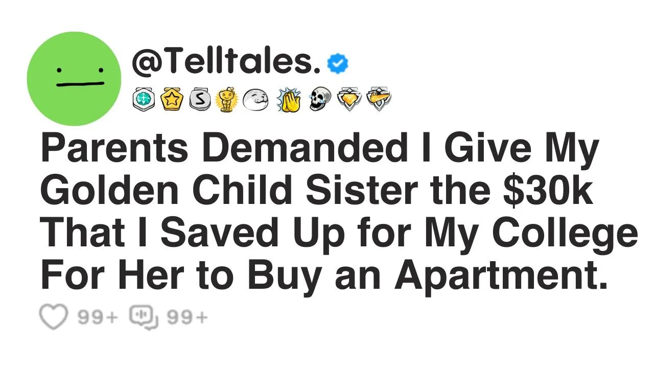 parents demanded that I give my Golden Child sister the $30,000 that I saved up for my college for her to buy an apartment I'm 19m currently a college student my relationship with my family has always been a bit strained mainly because of how different I am from the rest of them I've worked hard to achieve what I have maintaining good grades and even securing a scholarship for college I thought my efforts would finally earn me some respect but that wasn't the case my parents have always favored my sister she's spoiled entitled and used to getting