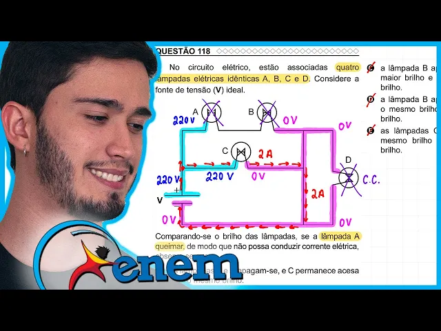ENEM 2022 PPL - No circuito elétrico, estão associadas quatro lâmpadas elétricas idênticas A, B, C e