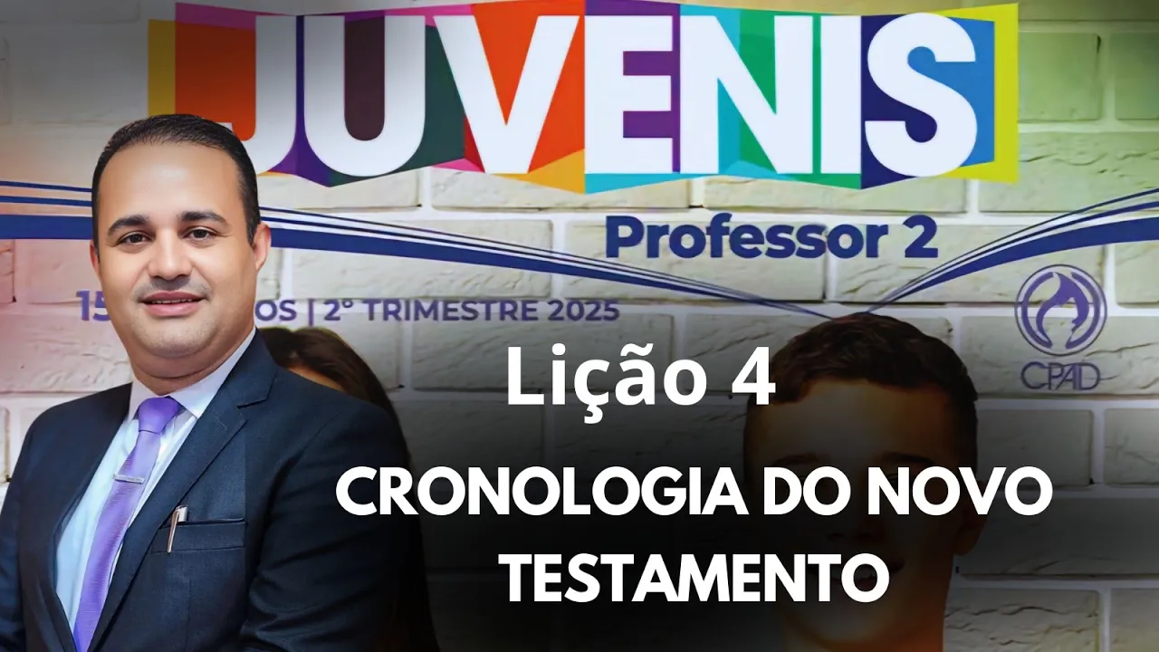 participação nesse canal você vai encontrar vários vídeos relacionados à Escola Bíblica Dominical a nossa famosa EPD toda semana estamos postando videoaulas e também dinâmicas da lição de adultos até já de infância e só peço o seguinte se você gostar se inscreva no canal ativa o sininho vem participar da nossa família crente porque aqui o alimento é forte mas sem demora nenhuma vamos para a nossa aula da lição de número quatro do juvenis do segundo trimestre de 2025 que traz por título A cronologia do Novo Testamento veja só se você é professor sempre recomendo que você