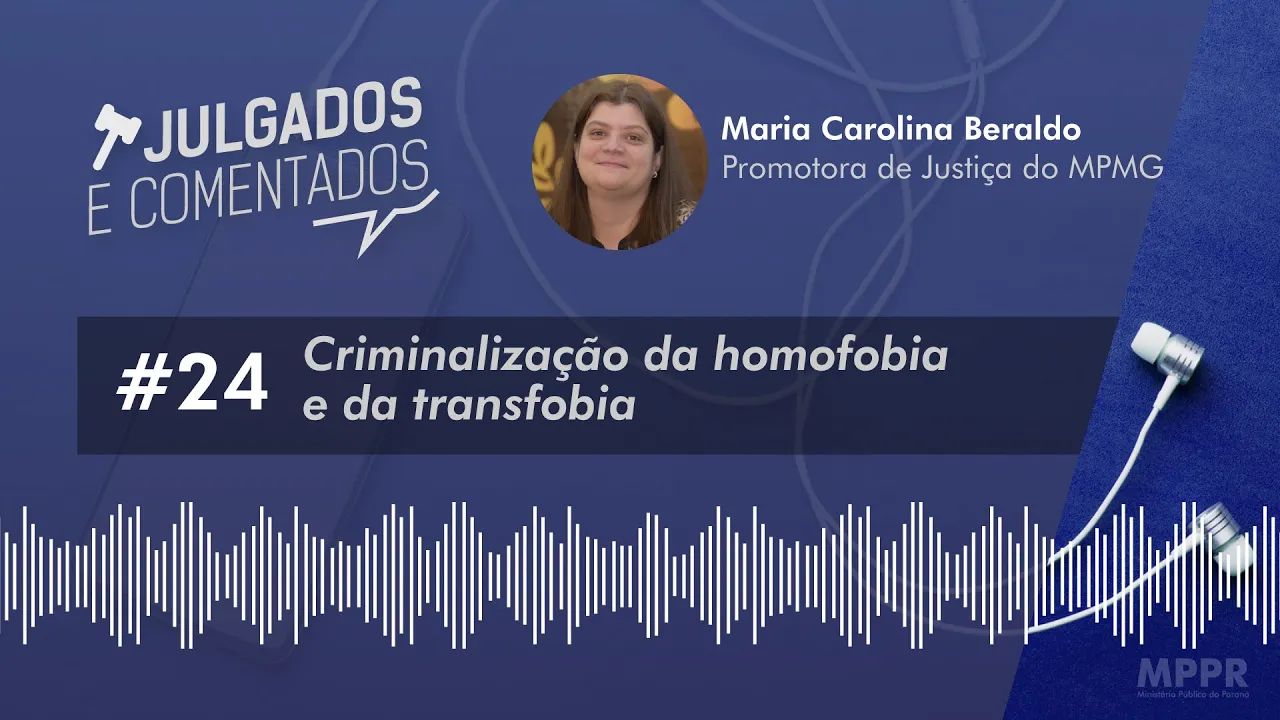 [Música] julgados e comentados a jurisprudência sob a ótica do Ministério [Música] Público uma produção Ministério Público do [Música] Paraná Olá estamos começando mais um episódio dos julgados e comentados eu sou Eduardo camb e hoje abordaremos o tema finalização da homofobia e da transfobia para tanto contamos com a participação da convidada D Maria Carolina Silveira Beraldo promotora de Justiça do Ministério Público de Minas Gerais Doutora em Direito Processual Civil pela Universidade de São Paulo e professora de direito da Universidade Estadual de Minas Gerais lembramos que esse episódio foi gravado à distância devido ao isolamento exigido pela