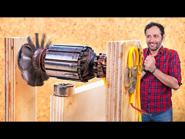 pelo [Música] som é difícil segurar na mão olha o que acontece eu colocar no Polo errado ele desacelera e se eu botar um ã gigante puxa motor e [Música] tudo é meio perigoso pegar o dedo da gente né eu achei agora como você sabe exatamente como funciona um motor elétrico Super simples e o motor elétrico fica dentro da furadeira olha os dois girando juntos [Música] [Música] se você curte esses motores elétricos caseiros a gente fez uma série uma vez mostrando vários modelos diferentes o primeiro deles é um bem legal de fazer em casa que é