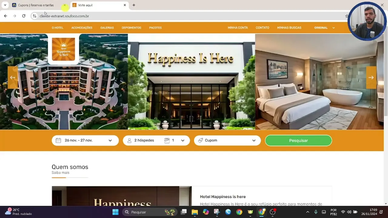 a uma promoção que não há limite então aqui vou incluir 10 cupons Vou salvar e registramos o cupom como é que o hosped vai encarar o cupom de desconto ao acessar o site e motor de reservas ele precisaria ter esse código do cupom para aplicá-lo então Digamos que eu tenho aqui o código do cupom vou realizar uma pesquisa no motor de reservas estabelecimento escolher a quantidade de hóspedes e agora sim eu insiro o código do cupom que é cupom 10 vou gerar essa pesquisa e com isso o cupom é aplicado a aplicação do cupom é