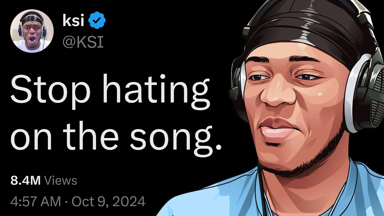 addressing everything below attaching a link that redirected his viewers to pre-save the song KSI again called out dant TDM before doing so yet another time attracting so many people who wanted to hate KSI they'd click on the song just to leave nasty comments this worked perfectly upon thick of its release it instantly went viral boosted by people who were simply there to hate bro took a 1.5e long break from music and came back with this take two years next time pretty confident he got chat GPT to write him a cool rap song this song is