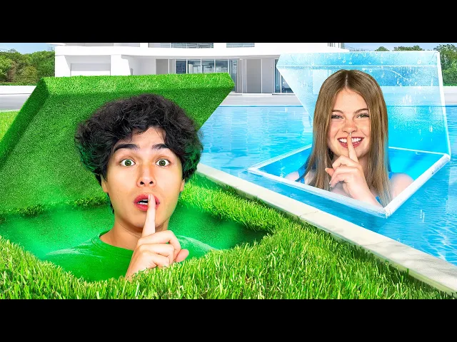 my secret room underneath it and cover it all up with a trap door let's get to [Music] work this is taking way too long let's find a new spot meanwhile I was already starting to build my secret room so I have all the supplies here that I need my plan is to extend the pool deck build my secret room with that extra space and then match the pool tiles with the outside of the room let's get started I was making Fast progress but the other guys were still struggling to even find their secret ropes I