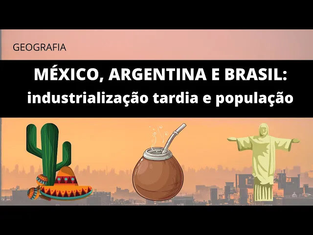 oi oi pessoal hoje vamos estudar um pouco sobre o México Argentina e o Brasil essa questão da industrialização tardia e alguns aspectos relevantes sobre a população desses países Bora pro vídeo e [Música] E aí E aí bom então pessoal vamos começar lá do princípio só revisando a América Latina Ela é formada por todos os países do México para baixo sendo assim é importante destacar que economicamente Brasil México e Argentina representam os destaques econômicos dessa região da América nós podemos afirmar que 64 por cento do PIB da América Latina é formada Então por esses três países