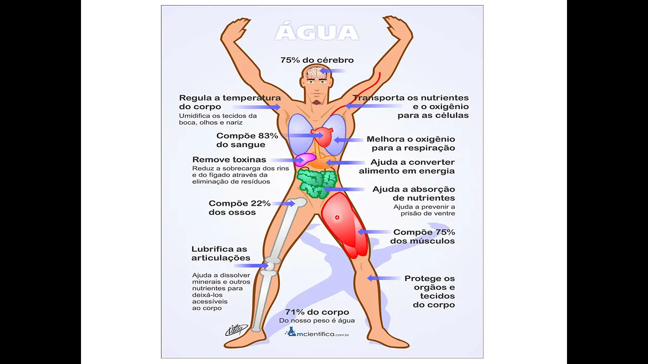 tá chovendo que você consegue vir né da água né que é muito importante ela não comentei ali né 75 por cento do seu cérebro é água rapaz né Então veja como ela é importante no nosso corpo né e tem uma outra coisa que não tá nesse Desenho mas que a gente vai falar bastante sobre ele é que a água ela permite com que exista acidez e nem vai assim de acidez na água mas se eu sei que agora isso é nenhum confuso a gente vai falar isso com detalhes que isso é muito importante para você