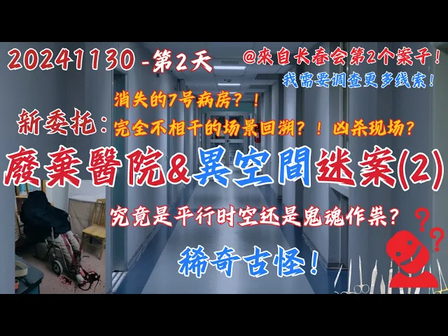 20241130 長春會第2個案子-第2天【继续探查!消失的7號病房&毫不相干的兇殺宿舍場景回溯!廣東中山某廢棄醫院異空間迷案】 詭異!這個案子至少做10天!