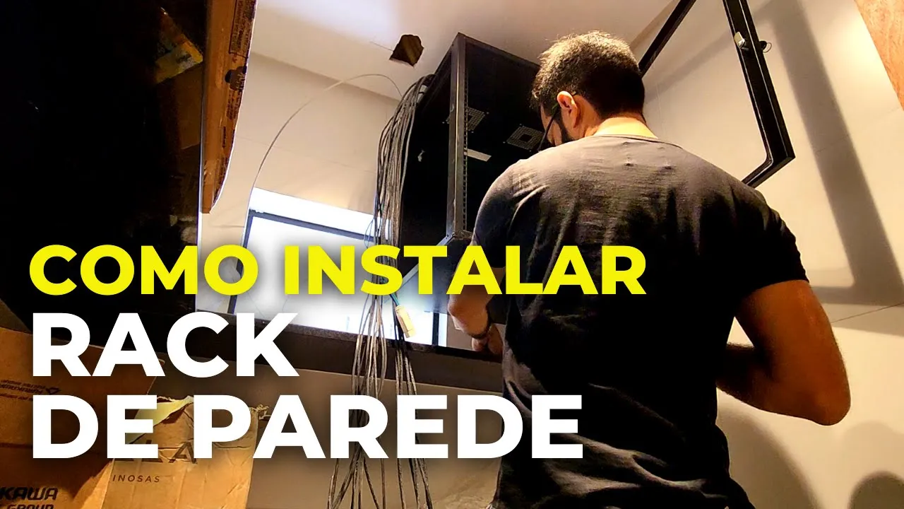 fala daí avançado no vídeo de hoje você vai aprender como realizar a instalação de um rack de parede na parede então se você quer aprender Esse passo a passo se liga no vídeo e vamos lá [Música] então pessoal no vídeo de hoje você vai me acompanhar realizando a instalação desse hack na parede Então vou utilizar ferramentas estou aqui em cima de uma escada com um nível a bolha para nivelar esse rack e a partir daí com uma caneta ou um lápis grafite realizar essa marcação dos furos na parede eu poderia ali já tirar medidas antecipadamente