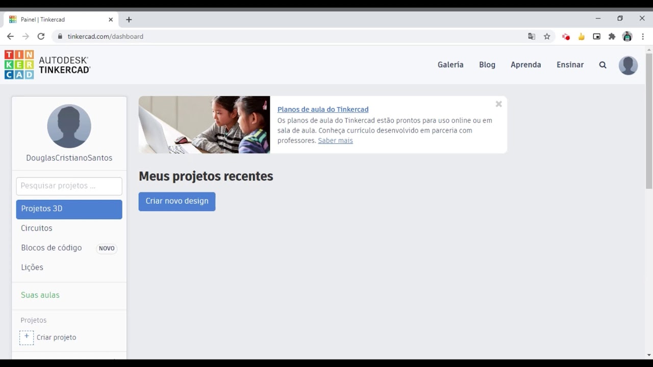 o Olá cursistas tudo bem sobre o senhor Douglas de nessa ao vamos dar continuidade ao nosso curso de Arduino não no interior fizemos a construção de um semáforo e nessa aula afirma é vocês que iríamos fazer então a construção de um semáforo com semáforo em paralelo para pedestres nesse semáforo Vamos então implementar um botão então estamos aqui na pele e vamos clicar em circuitos e criar novos circuitos para dar início então é a nossa aula de hoje inteiro Já abriu a plataforma e aqui em cima no canto esquerdo eu vou mudar a aula de hoje
