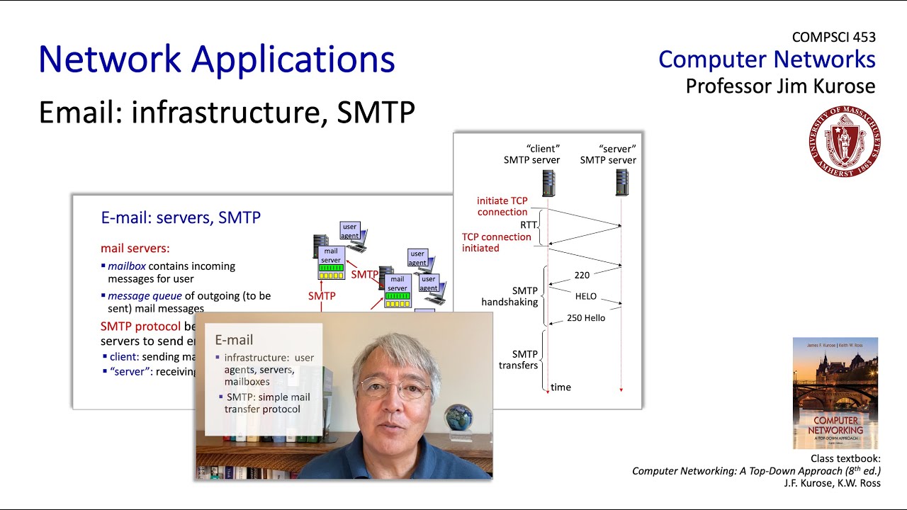 umass. edu which provides a number of services in this animation here we see on the top pc running the firefox browser making an http request to a server and getting a response back at the bottom we see an iphone running safari browser also making an http request and getting an http response back both of those browsers are speaking the http protocol with the apache web server http uses the transport services provided by the tcp protocol and here's how an http transaction works the http client your web browser for example opens a tcp connection to a web server using port 80. we'll learn about port numbers in just a second one or more messages http messages are then exchanged between the client and the server and then the tcp connection is closed http is a stateless protocol this means that the server maintains no internal state about the ongoing request there's a single request for an object and a single reply that's it there's no worrying about something like well this transaction has five steps we're now in step three and if i fail i'm going to need to roll back my state to what it was before this five step transaction started none of that with http it's stateless and you might ask why well because of its simplicity as we'll see protocols that maintain state will need to deal with clean up problems when a multi-step transaction fails returning to the initial state and resolving inconsistent state there are two types of http connections what are called persistent connections and non-persistent connections and it's important to remember these http connections between a browser and a server are different than the tcp connection which is provided at the transport layer underneath in non-persistent http a tcp connection is opened at most one object is then sent over the tcp connection and the tcp connection is closed downloading multiple objects is going to require multiple tcp connections to be established and we'll see that it takes a round-trip time first to open the tcp connection and then another rtt to make the request and receive the response in persistent http a tcp connection is again open to the server but this time multiple objects can be transferred serially over the single tcp connection between the client and the server once those multiple objects have been requested and returned the tcp connection can be closed persistent http corresponds to http version 1.