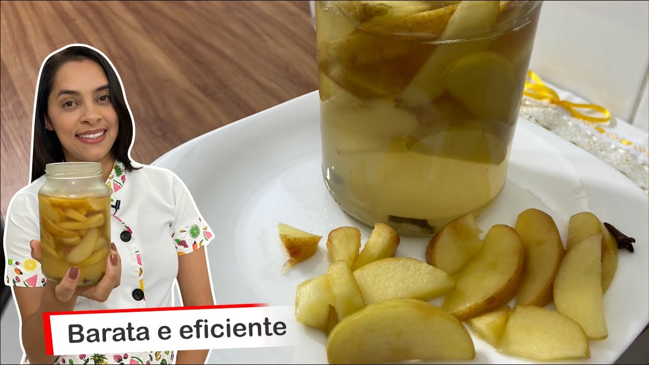 você ter o efeito probiótico dessa armação que vai fermentar depois você vai ter o efeito das fibras da maçã que ajuda a melhorar o colesterol ajudou aumentar a sensação de saciedade Então tudo de bom vou terminar de colocar a maçã aí e aí eu já volto espera aí Então olha eu coloquei a maçã não bota em cima que você tem que cobrir a maçã com água com preparado que eu vou fazer aqui que na verdade a gente pega a água aqui Bem limpa filtrada e para existe uma proporção ideal para um litro de água a