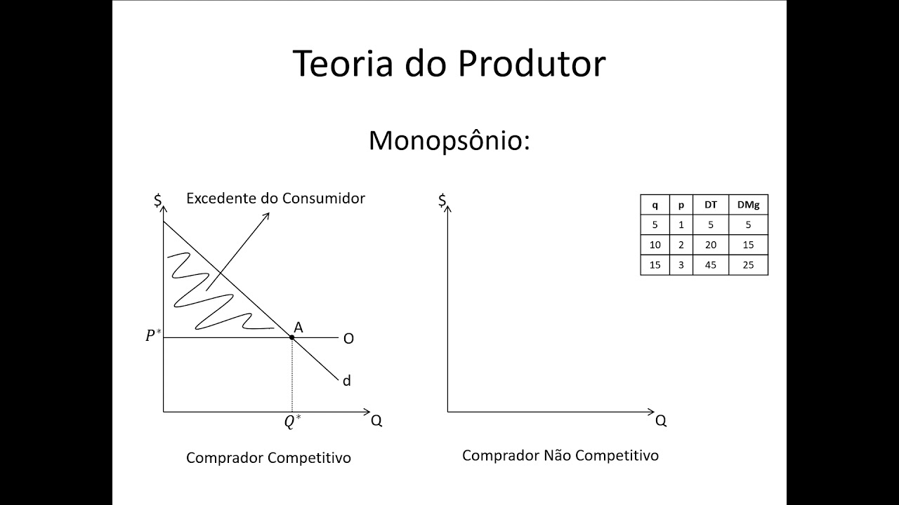 monopólios monopsônio é importante a gente fazer uma revisão da primeira estrutura de mercado que a gente viu que é instrutor de mercado da concorrência perfeita ou dos mercados perfeitamente competitivos antes a gente começar a essa revisão é importante falar pra vocês que as estruturas de concorrência perfeita elas são ideais são projetadas como se fosse o funcionamento ideal dos mercados só que é importante dizer que os mercados é não funciona em condições ideais e é muito mais comum encontrar a estrutura de mercado imperfeitas monopólios monopsônio oligopólio oligopsônio do que estrutura de concorrência perfeita então como é