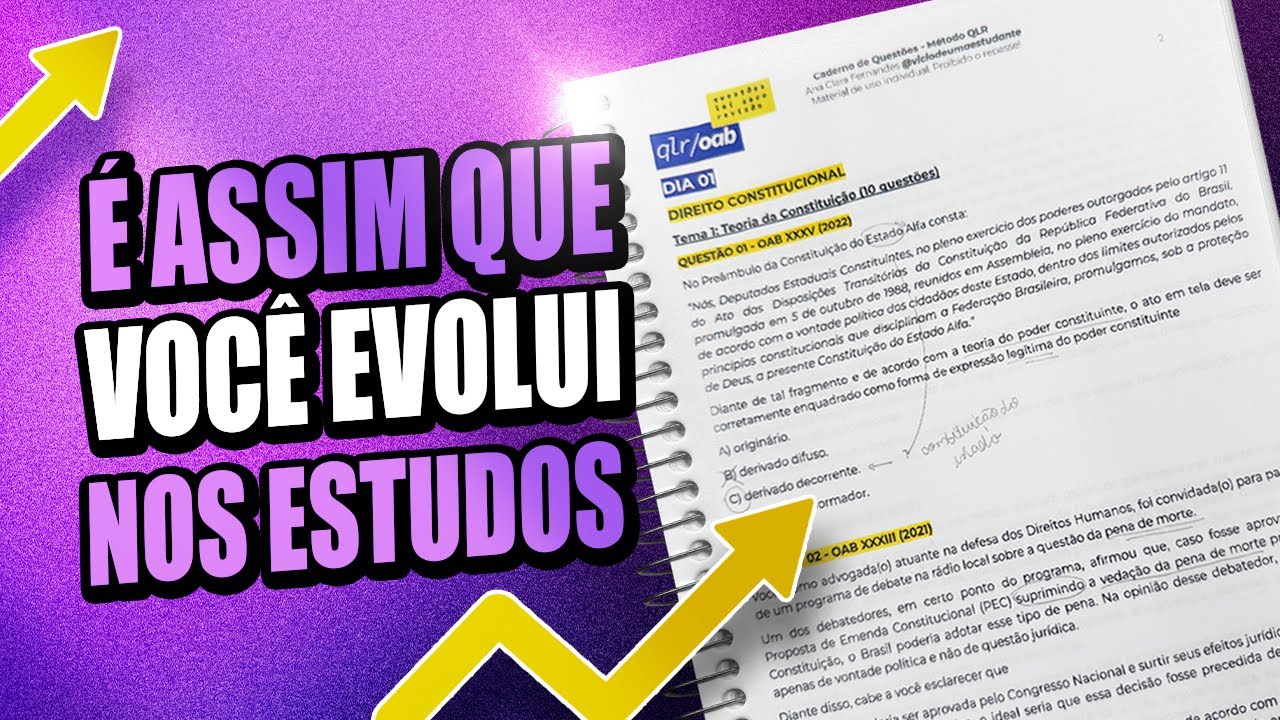eu estou aqui para falar para vocês toda a verdade e como você faz para essa metodologia de estudo que inclusive eu Super indico ser realmente eficaz no seu dia a dia então já deu like nesse vídeo já se inscreva nesse canal que eu tenho certeza que você vai tirar dicas valiosas desse vídeo primeiro de tudo estudar por questões é algo extremamente vantajoso para quem está se preparando para da OAB Inclusive eu Ana Clara foi uma das pioneiras no mercado em adotar essa metodologia para essa prova Inclusive eu passei assim eu estudei dessa forma então depois