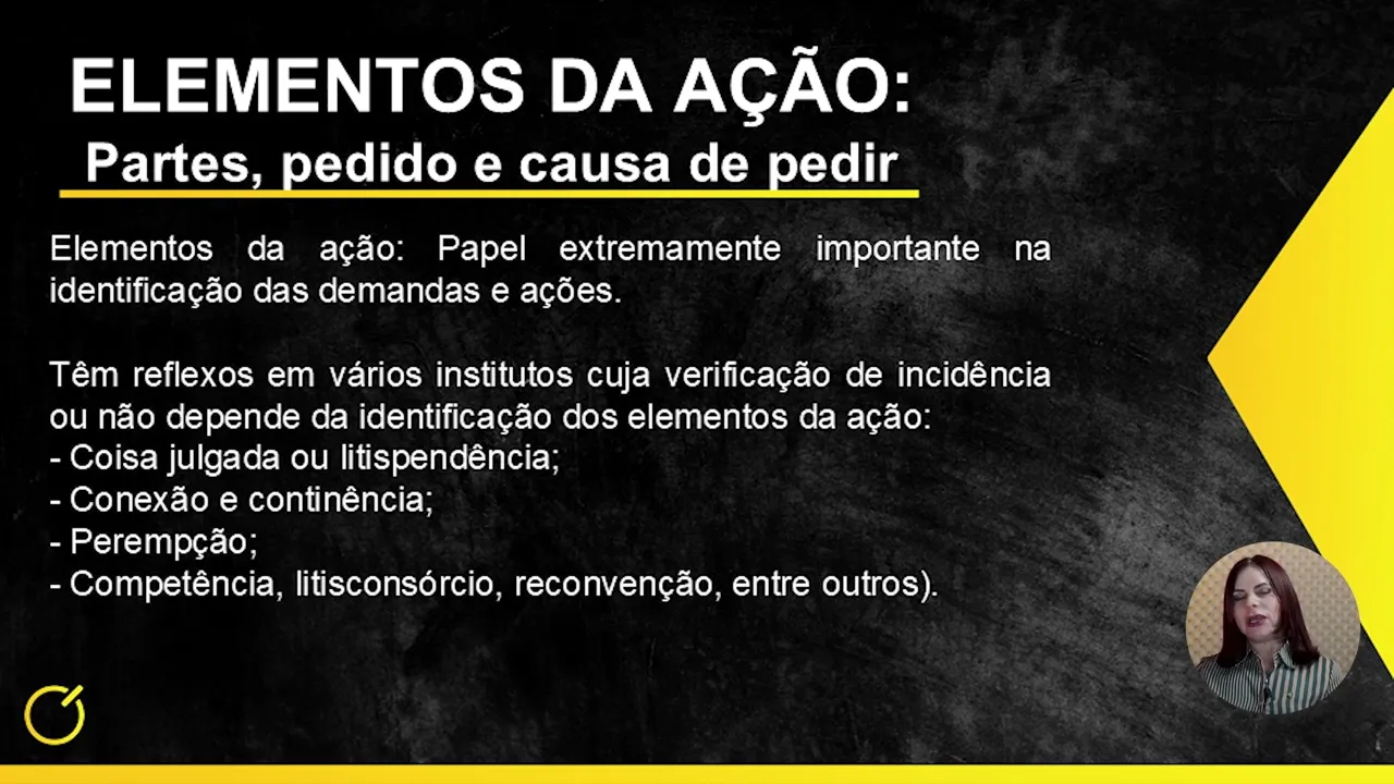 Então, eles têm reflexos em vários institutos que vão verificar, por exemplo, a incidência ou não de coisa julgada, lide pendente. A lide pendente é quando já existe outra lide pendente de julgamento que tem as mesmas partes, a mesma causa de pedir e o mesmo pedido. Inclusive, no penal, existem situações em que se verifica a polícia: o delegado de polícia pediu a prisão ou a busca e apreensão em relação a um suspeito que ele está investigando por, por exemplo, lavagem de dinheiro.