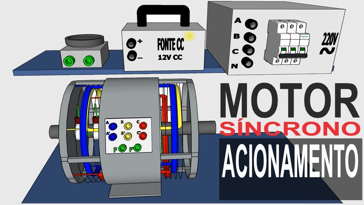 o Olá Todos eu sou o Marco Aurélio Estamos aqui no laboratório de máquinas para mais uma prática na aula de hoje vamos levantar a curva ver do motor síncrono trifásico Bora para aula E aí E aí E aí e a compreensão desta aula é importante revermos alguns vídeos que estão disponíveis o primeiro vídeo importante de revermos é sobre os princípios de funcionamento do motor síncrono trifásico naquele vídeo Além de falar sobre o princípio de funcionamento da máquina apresentamos também o circuito elétrico equivalente desta marca e outros dois vídeos importantes para serem revistos é o vídeo em que eu falo sobre a partida do motor síncrono como é feita a partida desta máquina de uma maneira mais teórica no caso essa é uma máquina com enrolamento compensador outra forma de partida é usando inversor de frequência e um outro importante vídeo é como partimos exatamente esta máquina fazemos as ligações explicamos o procedimento partida desta máquina passo a passo na aula de hoje vamos fazer a partida desta máquina a levantar a curva ver o que é a curva ver é a relação da corrente que circula pelo rotor da máquina pela bobina de campo do rotor da máquina com a corrente que circula pela Armadura da máquina que a corrente i. a. a corrente que circula pelo enrolamento do estator da máquina apenas Relembrando precisamos ter alguns Dados importantes para destacarmos aqui vamos operar essa máquina com tensão de linha de 220 porque tensão de linha de 220 porque a nossa atenção disponível de linha aqui fase ABC entre essas fases é de 220 é uma máquina trifásica Então vamos precisar aplicar 220 volts de linho nesta máquina E para isso vamos fazer a ligação dela lembrando ela tem dois enrolamentos por fase seria no nosso perfil frontal algo desse tipo aqui então por fácil tem um dois enrolamentos um dois enrolamentos um dois enrolamentos por isso temos 12 Bornes de acesso a marca como a nossa atenção aqui disponível é de 220 cada fase dessa máquina suporta 220 então que ligação que temos que fazer temos que colocar cada fase cada enrolamento da fase em paralelo colocamos em Parallel colocamos em paralelo e colocamos em paralelo a tensão de fase é 220 pra tensão de fase ser igual a tensão de linha em um sistema trifásico fazemos a conexão e em Delta entre os enrolamentos do estator da marca Num circuito elétrico ficaria algo do tipo coloquei no rolamento em paralelo por fase tenho dois rolamentos cada enrolamento suporta 220 a fase a fase b e faz assim e faço a ligação em Delta quando aplico 220 Observe aqui na cara de cada bobina entra 220 volts essa ligação foi mostrado com mais detalhes na aula anterior faremos a mesma ligação aqui Observe que a máquina ela indica essa ligação que vamos fazer para termos 220 de linha então coloco as ruínas por Fases em paralelo e depois ligo em Delta Então essa ligação já tá feita aqui na de cada barramento de esse aqui podemos puxar uma das fases vamos fazer a ligação aqui a fase ar o fasb o e fase ser é normalmente ou não vamos fazer ligações em máquinas elétricas nesse tipo de máquina aqui que é uma máquina que simula máquinas industriais é importante fazemos as ligações sem os equipamentos de medição porque vamos economizar em fios feitas as ligações Aí sim vamos colocamos equipamentos de medição para essa máquina precisamos alimentar o motor da máquina para alimentar o motor da máquina vamos usar uma fonte de corrente contínua O que é essa fonte aqui e lembrando Estamos fazendo procedimento exatamente igual anterior e colocamos em série com essa fonte a nossa resistência de ajuste é apenas um reostato é a única diferença entre o ensaio anterior no ensaio anterior nós temos uma atenção fixa de 12 volts e variamos a resistência de ajuste para ter um controle de Campo da marca neste ensaio vamos também variar corrente de Campo Porém para ter uma maior precisão vamos manter a resistência de ajuste no máximo e como Aqui nós temos uma tensão variável CC de 0 a 220 a gente vai conseguir uma maior precisão no controle da corrente de campo então eu vou usar os Bornes do lado de carro o controle desses Era 220 eu faço por aqui nós vamos fazer a ligação e vai entrar em série o nosso os tatu e ele está no máximo vou mantê-lo no máximo ó e vai lá no campo da máquina e é pago por aqui ele acesso rotor da máquina através das escovas e vou voltar lá para nossa fonte do CC e pronto essa ligação da marca lembrando é muito importante no motor síncrono E se eu ligar a chave e por aqui vai circular corrente trifásicas equilibradas vão produzir o campo magnético girante o rotor ele está parado e ele é muito bobinado no que circula o campo girante naquela bobina vai enxergar um fluxo variável esse fluxo variável vai para onde veja aqui tá conectado lá na bobina do rotor da máquina Então esse fluxo variável vai induzir uma tensão elevada e essa tensão elevada vai queimar a nossa fonte então essa máquina tem rolamento compensador Então como partidos aplicamos o curto-circuito é que após a partida retiramos o curto o rotor será magnetizado e haverá o acoplamento magnético entre o campo girante e o campo do rotor da máquina vamos aplicar aqui o curto-circuito e observe um detalhe faltaram os equipamentos eu procuro ligar a máquina sem os equipamentos de medição agora vamos ligar o equipamento de medição a ideia aqui é focarmos na curva ver poderíamos mostrar a potência a velocidade Apesar de que já sabemos que ser a 1800 RPM porque 120f sobre IP a frequência é 60 número de polos essa máquina é quatro com a rotação 1800 é uma máquina cinco e ela não perde essa votação então poderíamos fazer outras medições poderíamos medir as tensões mas como foco vai ser a curva ver e para evitar de termos muito equipamento e acabar confundindo vamos fazer e a ligação do amperímetro para corrente d