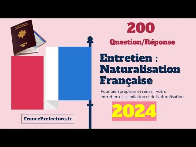 bonjour à tous et bienvenue sur France préfecture aujourd'hui nous allons vous présenter une nouvelle série des questions-réponses de l'entretien de naturalisation française vous avez été nombreux à regarder notre première vidéo et nous vous en remercions grandement nous allons à travers cette vidéo détailler question par question les 200 questions les plus posées lors de l'entretien de naturalisation française vous allez pouvoir vous préparer au mieux pour ce jour crucial et mettre toutes les chances de votre côté le jour J dans ce nouveau format nous avons voulu remettre au goût du jour l'ancienne vidéo afin que les informations