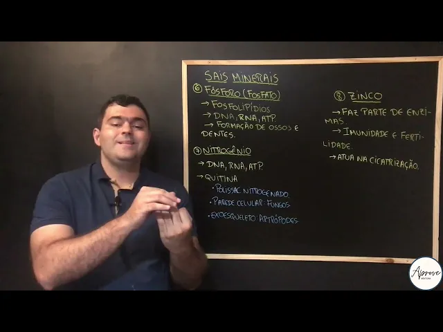 [Música] e dando continuidade aos nossos sais minerais bora falar um pouquinho de fósforo nitrogênio e do zinco pessoal o fósforo ele é e componente né faz parte da composição dos fósfolipídios logo ele é importante para membrana celular Lembrando que a composição básica das membranas celulares é uma bicamada fosfolipídica logo o forte para importante para as membranas celulares Além disso nós temos fósforo na composição dos ácidos nucleicos o DNA e o RNA e na composição do ATP que aí a nossa moeda energética pessoal então a importância do forte por aí ácidos nucleicos também e ATP E