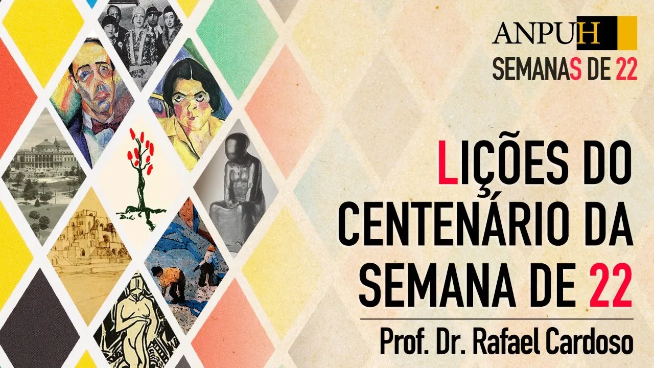 e o problema é a construção historiográfica do mito da semana de 22 como o ponto de partida do Modernismo no Brasil não só a ponte Partida com o começo meio e fim [Música] meu nome é Rafael Cardoso eu sou Historiador da arte membro do programa de pós-graduação em história da arte da UERJ Universidade do Estado do Rio de Janeiro e pesquisador associado ao Instituto da América Latina do da universidade livre de Berlim é bem É a queria estou aqui para falar sobre a semana de 22 é um assunto que tá que tá todo mundo falando