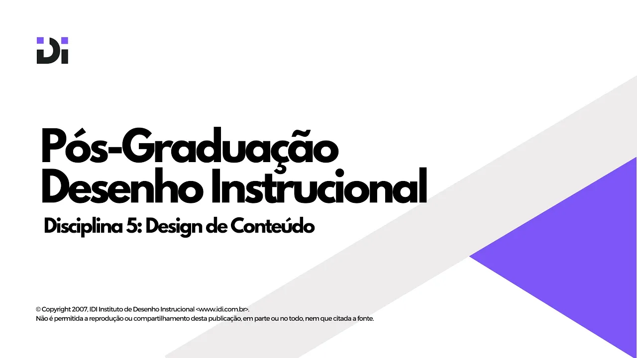 chegamos à nossa quinta disciplina da pós-graduação desenho instrucional nós vamos bater um papo sobre design de conteúdos Esse papo tá vinculado à terceira etapa do modelo AD a etapa de desenvolvimento onde nós olhamos pro nosso planejamento pra Matriz de design instrucional e tiramos o planejamento do Papel dando vida aos conteúdos que vão aí contribuir pra experiência de aprendizagem que nós estamos construindo esse papo sobre design de conteúdos vai começar por direito autoral nós vamos entender o que que é direito autoral Quais são os dois pilares do direito autoral Direito moral direito patrimonial entender de uma