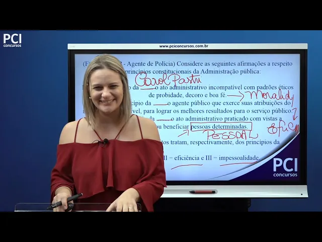 ela viola o princípio da impessoalidade a resposta correta eu sou trouxe a correta para vocês mas a resposta correta nessa nessa questão é a letra a quem dizia exatamente o nome dos princípios um oralidade eficiência e impessoalidade vocês viram gente que não são perguntas difíceis apesar de ser uma única pergunta que eu trouxe essa pergunta representa bem o modo como são feitas as perguntas pelas bancas então assim que vai te trazer uma situação zinha bem simples do tipo ai o vereador foi inaugurar uma pista de corrida e colocou uma placa bem grande com o nome