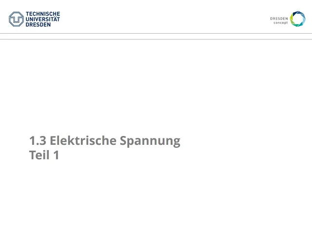 herzlich willkommen zum Kapitel 1. 3 indem wir die dritte wichtige Größe der Elektrotechnik kennenlernen werden nämlich die elektrische Spannung und die elektrische Spannung ist eng verbunden mit dem Begriff des elektrischen Potenzials und in diesem vorlesungsvide soll es also erstmal darum gehen diese beiden Begriffe Potenzial und Spannung zu definieren also Definition von Potential und Spannung so und weil das gar nicht so einfach ist gehen wir jetzt ein etwas ausfühlicheren weg wir spannen nämlich eine Analogie zur Mechanik und betrachten zunächst das Potenzial einer Masse im Gravitationsfeld das ist denke ich ein kleines bisschen intuitiver für sie erstmal vielleicht auch aus der Schulzeit noch ein bisschen besser bekannt und daraus leiten wir dann also den potenialbegriff für die Elektrotechnik ab das heißt wir betrachten folgende Analogie das Potenzial im Gravitationsfeld ja skizzieren wir das mal wir betrachten hier unsere Erdoberfläche und skizzieren jetzt das Gravitationsfeld in Form von wenigen Feldlinien so und wir nehmen das jetzt mal vereinfacht an als äquidestante Parallele Feldlinie die senkrecht auf der Erdoberfläche stehen das ist unsere Erdbeschleunigung g ist eine vektorielle Größe vektorielle Größen sind also physikalische Größen die sowohl ein Betrag als auch eine Richtung besitzen ja und in diesem Schwerefeld der Erde platzieren wir jetzt eine Masse eine Punktmasse m und die Masse befindet sich auf einer Höhe h ja und jetzt wissen Sie diese Masse wird das heißt es wirkt eine Kraft auf diese Masse und diese Kraft ist ebenfalls eine vektorielle Größe also auch diese Kraft besitzt einen Betrag und eine Richtung und die Kraft ist proportional zur Masse selbst und zur Erdbeschleunigung das heißt zu unserer vektoriellen Größe g so wenn wir jetzt die Masse heben das heißt wenn wir die Höhe vergrößern dann müssen wir von außen Energie ähm zuführen und wenn wir die Masse mit dem Feld bewegen das heißt wenn wir die Masse senken dann wird Energie vom Feld an der Masse verrichtet das heißt das Feld gibt Energie an die Masse ab und die Masse wird beschleunigt die kinetische Energie der Masse nimmt entsprechend zu wir können jetzt für jede Höhe eine sogenannte potentielle Energie der Masse zuweisen und die potentielle Energie beschreibt also die Fähigkeit der Masse Arbeit zu verrichten das Schreiben wir mal mathematisch auf die potentielle Energie wpot also wir verwenden in der Elektrotechnik sowohl für Energie als auch Arbeit das Form mitzeichen groß W um dann später eine Verwechslung mit der elektrischen Feldstärke zu vermeiden die bekommt das vor mitzeichen e die Masse besitzt eine potentielle Energie bei einer bestimmten Höhe und diese potentielle Energie ist also proportional zur Masse selbst zum Betrag der Erdbeschleunigung und zur Höhe und jetzt sehen sie hier schon wenn wir die Höhe der Masse vergrößern nimmt auch die potentielle Energie zu und wenn wir die Höhe verringern dann nimmt die potentielle Energie ab und diese potentielle Energie beschreibt also wie ich bereits erwähnt hatte die Fähigkeit der Masse aber zu verrichten und das können wir jetzt übertragen auf elektrische Größen nämlich auf Ladungen in einem sogenannten elektrischen Feld auch Ladungen können in einem elektrischen Feld beschleunigt werden durch elektrische Kräfte und sind daher auch Träger potenielle Energie das Schreiben wir zunächst mal als ein Merksatz auf also Ladungen werden durch elektrische Kräfte beschleunigt und sind daher ebenfalls Träger potentielle Energie ja und das können wir mal skizzieren in Analogie jetzt zu unserem Gravitationsfeld hier oben wir betrachten wieder eine Bezugshöhe und unser Raum ist jetzt also gekennzeichnet durch einen raumzustand den nennen wir elektrisches Feld dieses Wesen des elektrischen Feldes das werden wir im nächsten Semester ausführlicher besprechen wir gehen jetzt einfach mal davon aus unser Raum ist jetzt also dadurch gekennzeichnet dass auf elektrische Ladungen Kräfte einwirken und diesen raumzustand nennen wir elektrisches Feld und das Formelzeichen das diesen raumzustand ja beschreibt das ist das formzeichen groß e ebenfalls eine vektorielle Größe das heißt wir sehen das anhand dieser drei Feldlinien hier das elektrische Feld besitzt auch einen Betrag und eine Richtung ja und jetzt platzieren wir eine Ladung irgendwo im Raum das ist eine Ladung mit der Ladung Q und die Ladung befindet sich an einem Ort A und dieser raumzustand ist jetzt dadurch gekennzeichnet dass wir eine kraftwik auf diese Ladung beobachten das heißt auf diese Ladung gibt es eine kraftwikung F und diese Kraft ist jetzt proportional zur Ladungsmenge selbst und proportional zu dieser elektrischen Feldstärke mit dem Formelzeichen groß e das heißt in diesem Ort A besitzt unsere Ladung jetzt eine potentielle Energie die nen ich a und wenn ich die Ladung jetzt in einen anderen Ort verschiebe also beispielsweise hier an einen Ort B dann besitzt die Ladung an diesem Ort eine potentielle Energie WB also der Bezeichner bezieht sich jetzt hier immer auf den Ort und diese potentielle Energie ist jetzt natürlich wieder abhängig von der ladungs Menge Q selbst und jetzt wäre es ja wünschenswert eine physikalische Größe einzuführen die diese potentielle Energie ja quantifiziert aber unabhängig von der Ladungsmenge ist dann würde nämlich diese Größe den jeweiligen Raumpunkt charakterisieren und diese Größe die nennen wir elektrisches Potenzial das elektrische Potential bekommt das vor mitzeichen F und das elektrische Potenzial in einem Punkt A nennen wir jetzt malwgen F a und ist definiert als die potentielle Energie einer Ladung im Punkt A also in unserem Fall wa geteilt durch die Ladungsmenge selbst und das und die Einheit des Potentials die Einheit von vi ist jetzt der Quotient aus der Einheit der Energie und der Einheit der Ladung so die Einheit der Energie ist Joule die Einheit der Ladung ist Coulomb Joule w