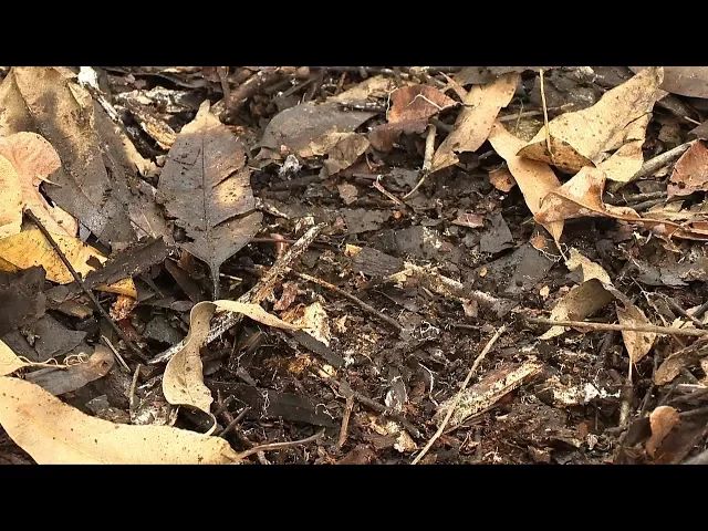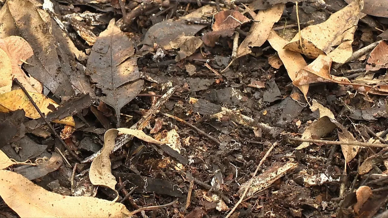 sempre lembrar que estamos trabalhando com microorganismos que são vivos e quanto menos química melhor depois que a gente preenche então a nossa calha de bambu com arroz cozido gente vai colocar embaixo da serrapilheira que é essa camada que é formada onde a gente tem mato fechado com folhas matéria orgânica restos de de plantas enfim a gente dá uma afastada na serra fileira pra pra nossa caixa entrar em contato com o solo e cobre de novo aqui a gente usou uma calha mas a gente pode usar mais mais de uma calha por vez porque a gente