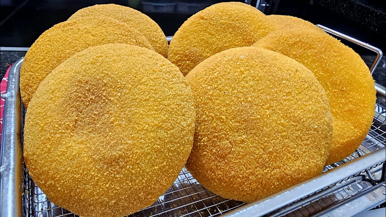 aqui Água pura não tem nada nessa água só água mesmo vamos mergulhar escorrer um pouquinho e tem aqui a farinha de rosca né farinha de rosca industrializada a gente compra aí nos pacotes Supermercado você pode usar aí e qualquer farinha né para empanamento aí Qualquer uma que você tiver aí ou que você encontrar no supermercado empanar é super fácil só passar mesmo vamos colocando aqui na bandeja é pessoal nosso salgado já estão empanados né veja o quanto fica bonito né que Band dejada de salgado bonito né Gente esse salgado ele pode ser congelado ele tem