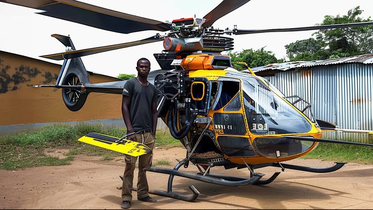 da África construiu um enorme helicóptero que aparenta ser bem robusto Marx e w o criador dessa obra complexa é um estudante de engenharia mecânica da faculdade tecnológica de istini um país localizado no sul do continente africano o helicóptero de Mark é muito bem equipado possui rodas hélice traseira cabine tudo o que você poderia encontrar em um helicóptero tradicional quando D partida na máquina até parece que as hélices de cima vão encostar nas de trás localizada na ponta da calda Mas a distância foi calculada cuidadosamente para prevenir dela se chocarem [Música] infelizmente não foi dessa vez