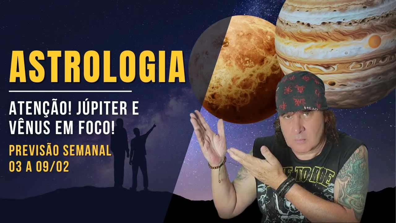 [Música] [Música] [Música] salve galera e maravilhosa estamos aqui em mais um vídeo de astrologia semanal correspondente ao período do dia 3 A 9 de fevereiro qual o tema que eu separei para nós trocarmos uma ideia atenção Júpiter e Vênus em Foco como todo mundo bem sabe que acompanha aqui o nosso canal Júpiter e Vênus são os Regentes de 2025 e nessa semana nós temos a força deles em foco por quê vou demonstrar aqui para vocês quando chegar a terça-feira o Júpiter tá aqui ele está em gêmeos lembro que tudo que eu falo aqui na primeira