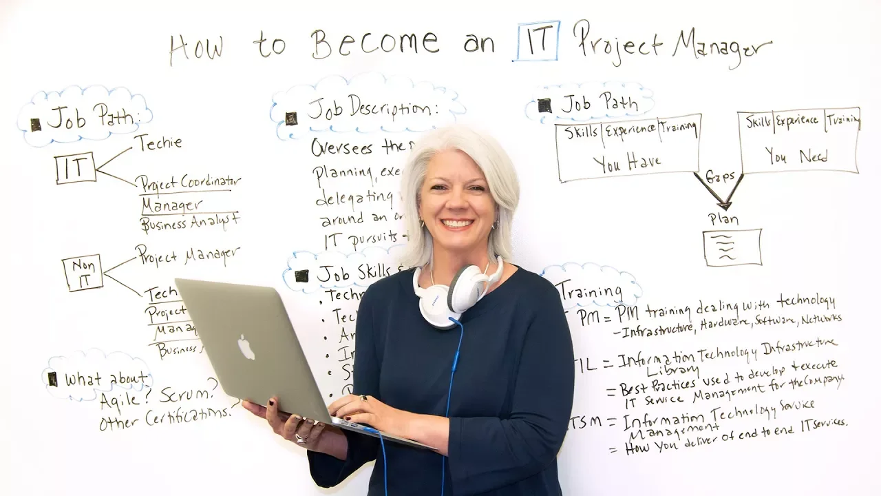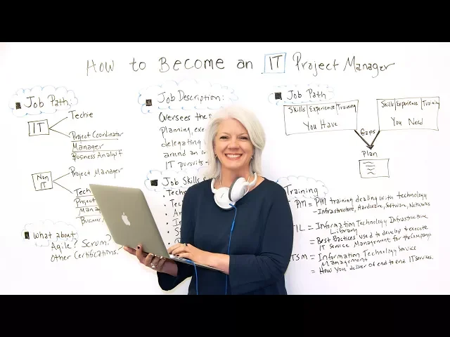 [Music] today we're talking about how to become an IT project manager an IT meeting information technology and when someone asked me that I love it because I know they're intentional but it really depends on how to get there for their career path so let's take a look at some options it depends on if someone starts in IT they could be a techie or they could be some other role in IT already so they have an interest in the project management piece they could also be non IT meaning they could be in a different business unit