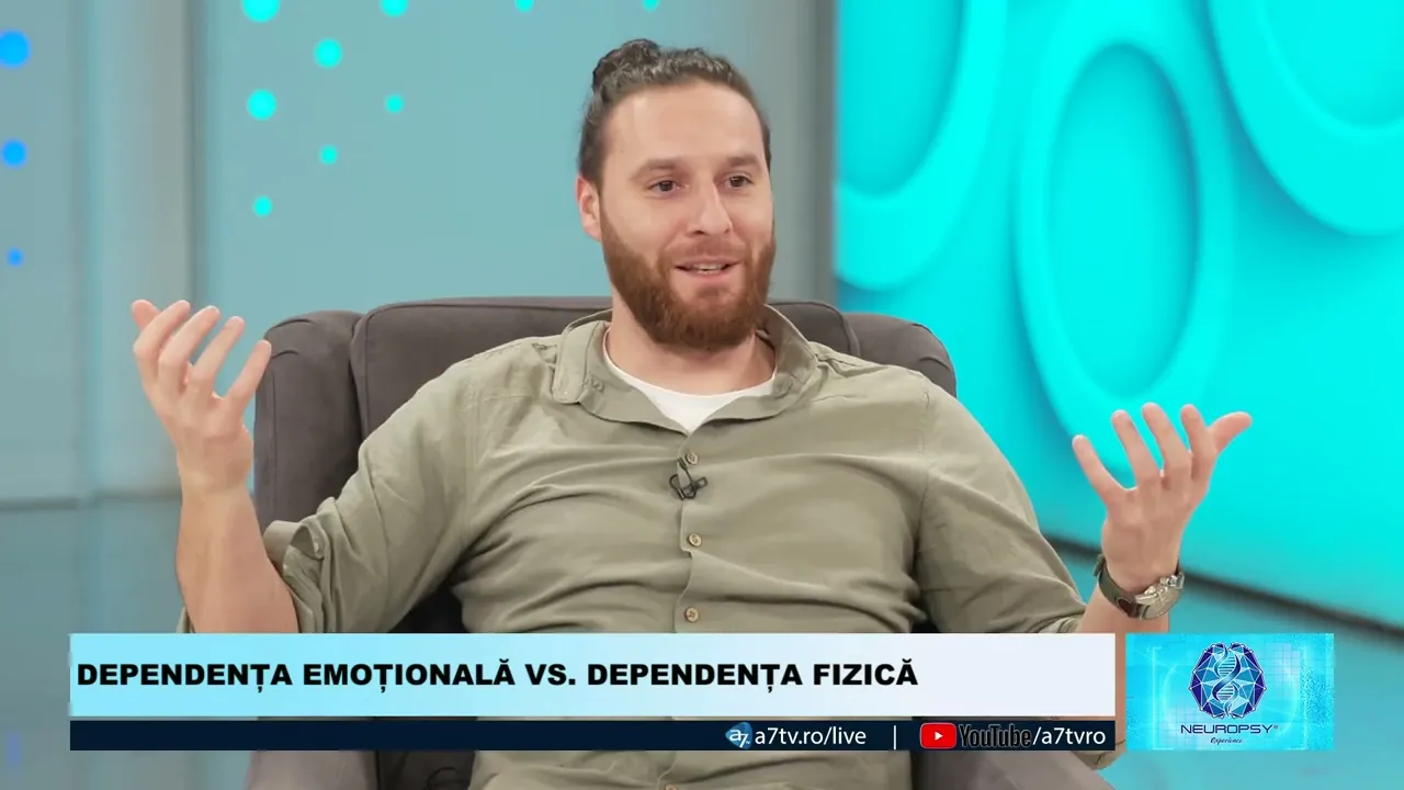 [Muzică] Bună ziua și bine ați venit la o nouă ediție neuropsi emisiunea A7 TV un spațiu dedicat explorării și înțelegerii sănătății mintale și emoționale sunt doctor Gina Chiriac și astăzi deschidem un dialog esențial despre dependențe de la cele mai cunoscute cum ar fi dependența de substanțe la cele mai subtile Cum este dependența emoțională Mă bucur să î avem astăzi alături de noi pe Adrian beu psihoterapeut integrativ formator și supervizor arpi Bine ai revenit Adrian Bine te am regăsit Gina Mă bucur să fiu din nou aici și să discutăm astăzi vom discuta despre dependen Ce sunt
