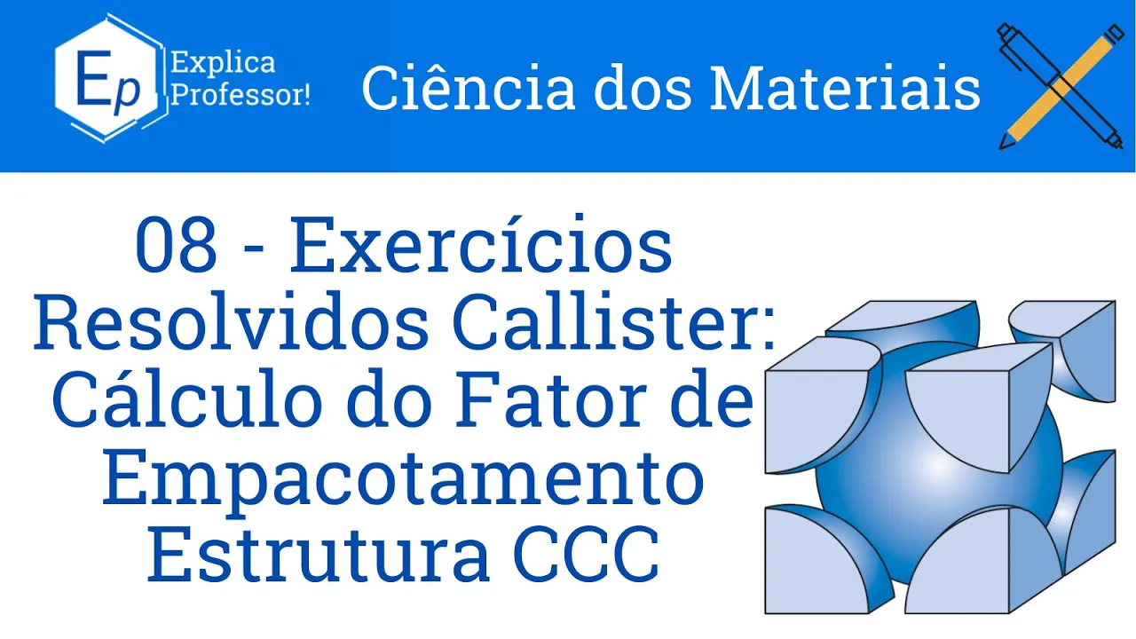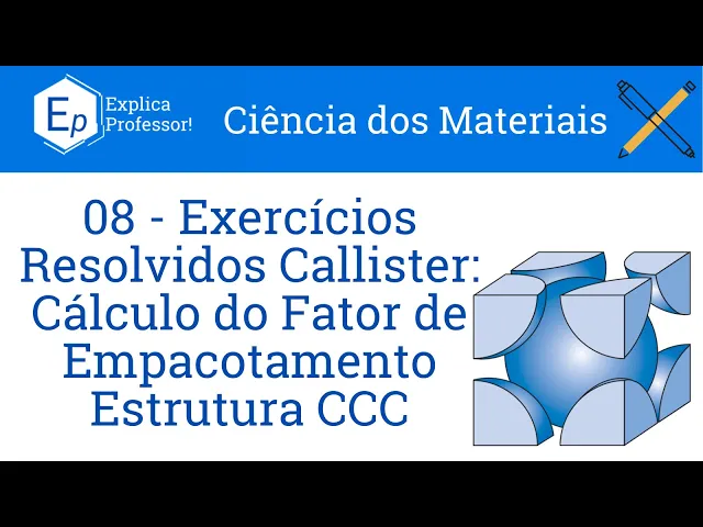 aqui eu vou ter e o tô aqui e aqui no meio Eu também vou ter outro lado então daqui até aqui eu tenho um raio daqui até que eu tenho outro raio daqui até que eu tenho outro raio e daqui até aqui eu tenho usuário disso eu tenho aqui no final das contas Quanto é esse aqui é exatamente a minha vista desse Qual o dia da gente como agora tá nossa segunda pergunta bom E foi exatamente para determinar o fator de empacotamento de uma estrutura cúbica de corpo centrado como que Eu determino o meu fator