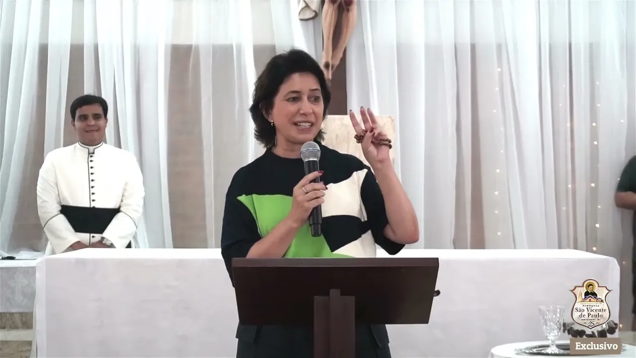 cada um Deus deu um papel mas como é que eu vou saber qual é o meu se eu não escuto se eu não rezo se eu não me confesso Se eu não falo que Jesus Eu não tenho força eu sou fraca me ajuda o dia que a gente quanto mais vocês forem dependentes dele a gente com Deus tem que pedir uma das Graças é da infância espiritual a gente tem que ser dependente de Deus como ar que a gente respira fala Senhor só faz se senhor senhor me ajuda porque eu não sou capaz e ele