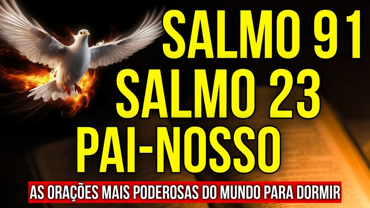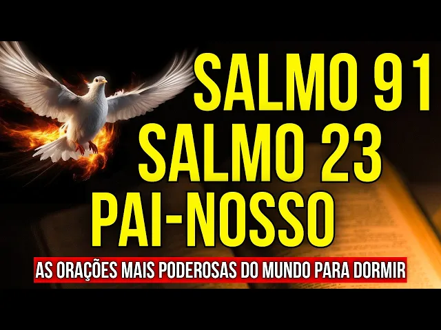 [Música] Oi eu sou Dinis Vieira este vídeo traz para você as meditações dos Salmos 91 e 23 para você ouvir dormindo juntamente com a oração do Pai Nosso o objetivo deste áudio é te ajudar a dormir ouvindo estas três orações mais populares mesmo tempo as três orações mais poderosas para que a sua fé seja elevada seus pensamentos negativos e suas angústias se acalmem e assim você possa dormir em Paz confiando toda a sua vida nas mãos de nosso Deus altíssimo durma ouvindo o Salmo 23 o Salmo 91 e o Pai Nosso e algo maravilhoso pode