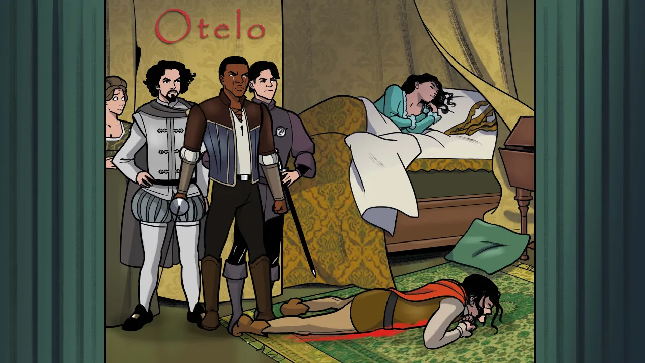 obra es esencialmente una crónica de sus esfuerzos por encajar entre los blancos venecianos la obra comienza con iago un alférez del ejército veneciano hablando con rodrigo otro veneciano rodrigo tiene el corazón roto ya que su amada desdémona hija bien educada de un renombrado senador se ha fugado recientemente con otelo un general moro resulta que iago también está resentido con otelo quien recientemente ascendió a teniente a un soldado de buenas maneras llamado casio en lugar de thiago hombre de dos caras thiago decide sabotear a otelo y a desdémona utilizando a rodrigo como peón para ello anima
