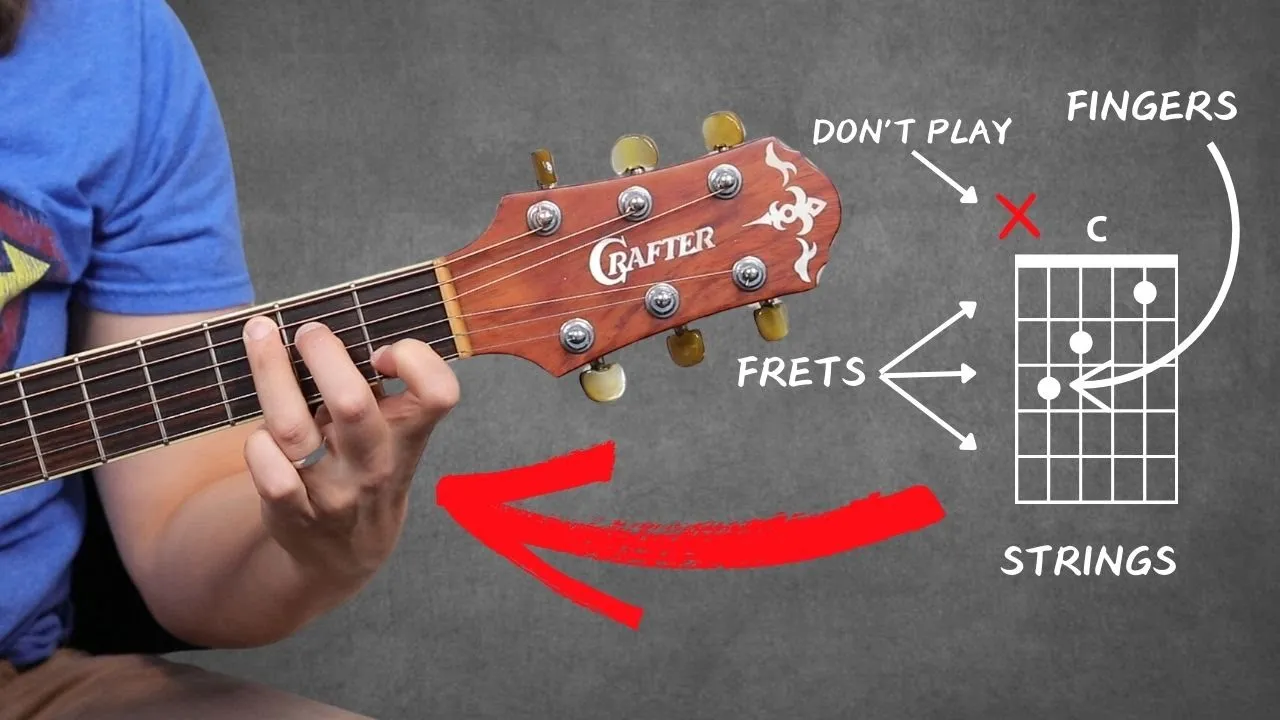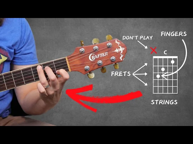 in this lesson I'm going to show you the secret map that's going to help you learn any kind of chord you would ever want to play on the guitar and that is the chord diagram learning how to read a chord diagram is an essential skill as a guitar player especially when you're getting started because it is the map of what your fingers do on the fretboard of the guitar to actually play a chord like an E minor chord or a c chord or a G chord or a D chord right and you saw as I