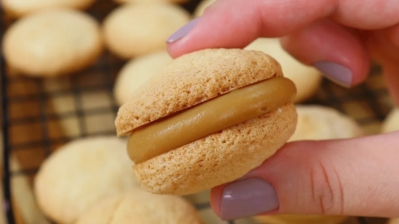 [Música] bem-casado Prontinho agora todos eles já secaram já estão prontinhos para poder ser embalado aqui ó quando eu encosto dedo em cima não gruda mais na mão nem nada do tipo tá totalmente seco o rendimento dessa receita é de 21 unidades já contando as duas partes coladinhos o bem-casado Pronto pode ser feita num tamanho menor também aí vai render um pouquinho mais mas nesse tamanho de 4cm e meio é de 21 unidades EA validade dele é de até 4 dias em temperatura ambiente é bem embaladinhos importante que ele esteja bem seco e você pode armazenar