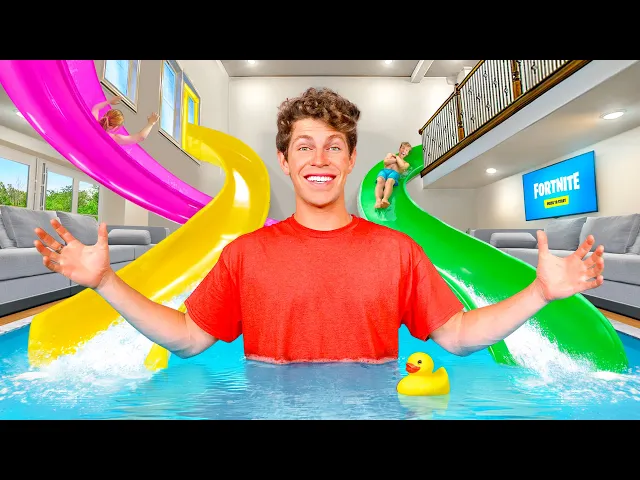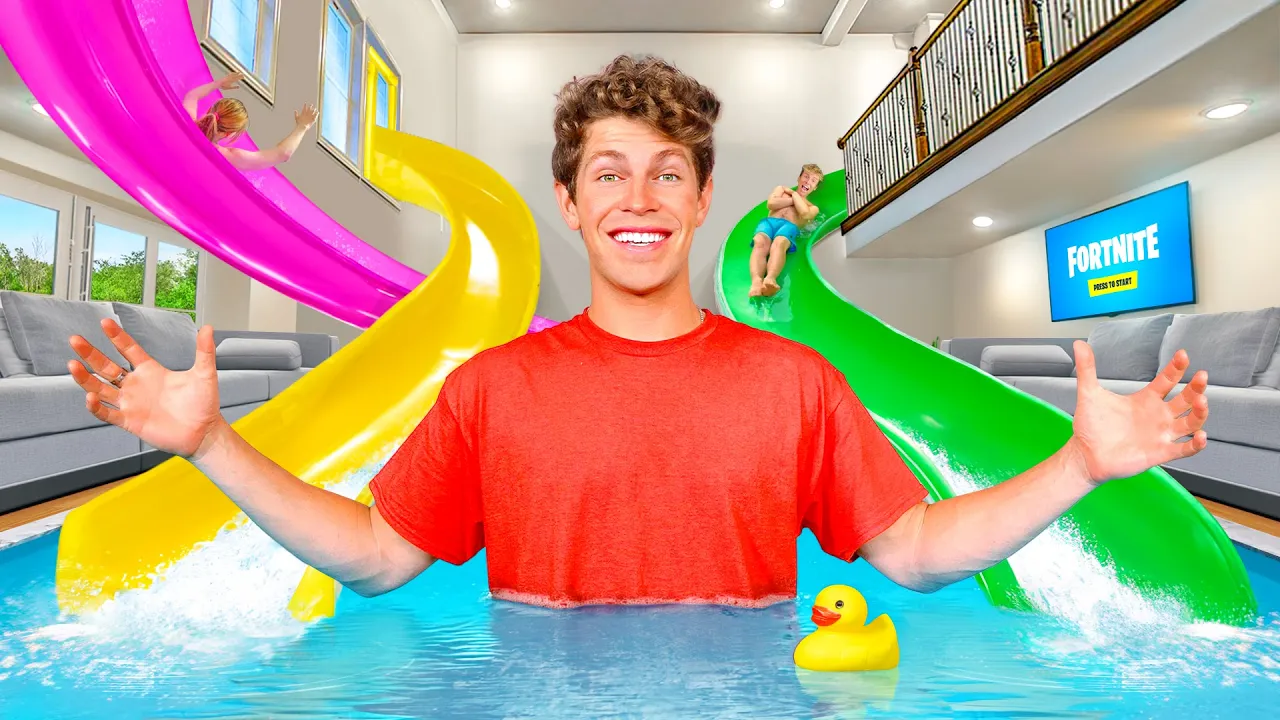 sorry Ben but H Go I mean on the bright side of things now I have a water park in my freaking house w I'm going to go back to my Prime pool see you I can't believe Camp built a better water park than me so today I'm transforming my house into a legit theme park with huge roller coasters games and so much more but there's a problem my friend cam thinks he can build a better theme park than me no matter what so to Settle this we'll be splitting the house in half I'll be building