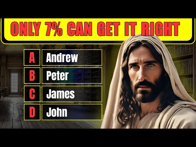 to Jesus when he saw that he had risen a Luke B Bill Gates C Matthew D Peter you get 10 seconds [Music] that's D the correct answer was Peter as the disciples were on their boat they witnessed the miraculous sight of Jesus having risen and walking along the shoreline overwhelmed with joy Peter couldn't contain his excitement and leaped into the water swimming eagerly to reach Jesus it was a moment of sheer Jubilation for Jesus was indeed alive in John [Music] 21 question 23 the Good Samaritan is a famous Parable told by Jesus the story was