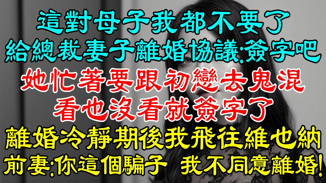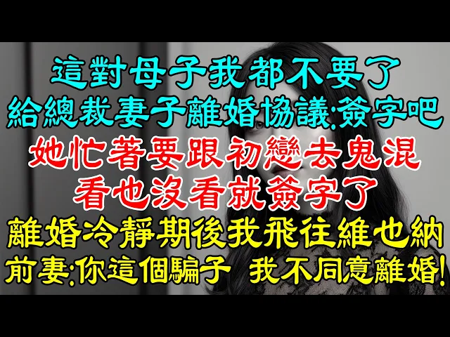給總裁妻子離婚協議:簽字吧!她忙著要跟初戀去鬼混,看也沒看就簽字了,離婚冷靜期後我默默飛往維也納後,這對母子我都不要了!前妻:你這個騙子,我不同意離婚!