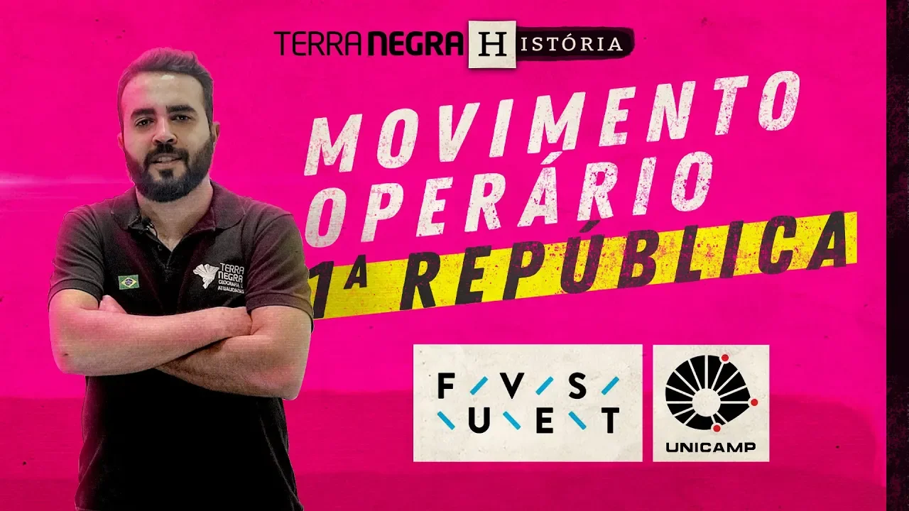 salve salve pessoal terra negra tudo certo pois bem meu nome é celso eu sou professor de história e hoje a gente vai começar uma pequena revisão para a prova da unicamp com o tema relevante inclusive tem belas aparições nas últimas provas o tema selecionado para esse vídeo é o tema do movimento operário na primeira república ou se você preferir assim entender república velha muito embora tenha um nome pejorativo movimento esse que se desenha principalmente final do século 19 1889 exatamente na primeira metade do século 20 mais especificamente até a década de 1930 quando começamos então