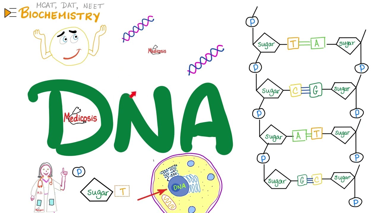 today's video is all about dna so we're going to run through the structure of dna with a focus on nucleotides and complementary base pairing and at the end we're going to briefly go through how a gene can code for a protein the first thing to understand about dna is that it's made from two strands that are wrapped around each other in this twisting shape that we call a double helix to understand the rest of the structure though let's take just one of these strands and then show it as a 2d diagram as though it's been