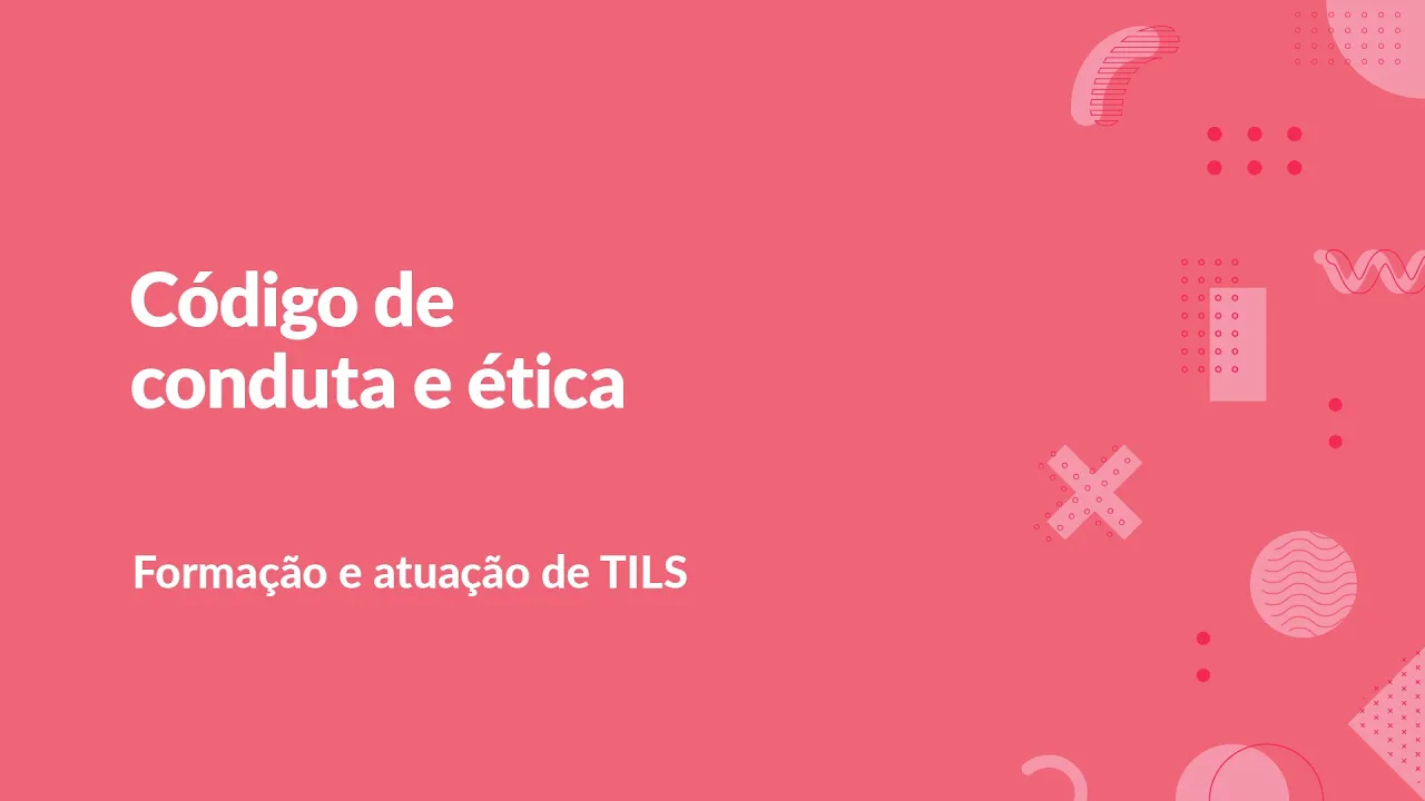 o [Música] Olá pessoal tudo bem com vocês daremos início a quinta unidade falando sobre o código de ética que é um instrumento que Oriente a todos os profissionais e com o intérprete não é diferente é um conjunto de princípios que regem sua atuação a partir do tipo de relação profissional que o tio os primo tem o tio esp é o tradutor e intérprete de língua de sinais língua portuguesa seu objetivo é principal é intermediar o processo interativo na sua atuação o tio tem a responsabilidade pela veracidade e fidelidade das informações e a seguir falaremos de