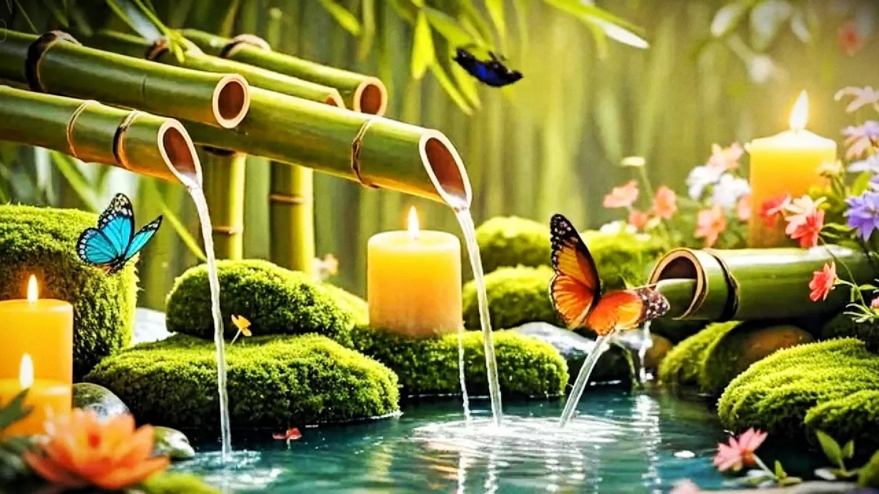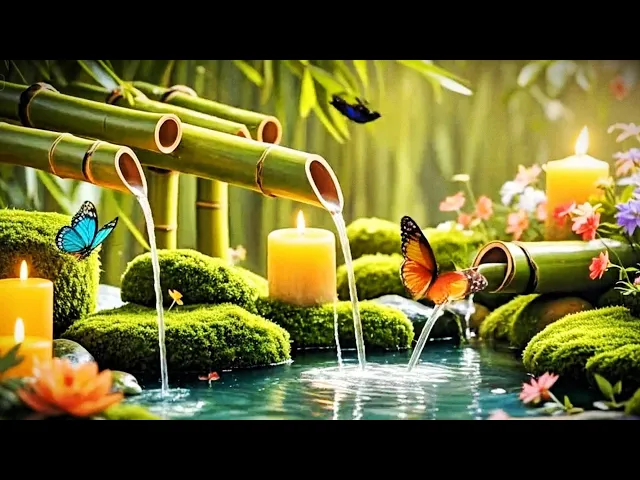 Relaxing Piano Music with Bamboo Water Sound. Soul Relaxation & Deep Sleep, Healing Meditation Music