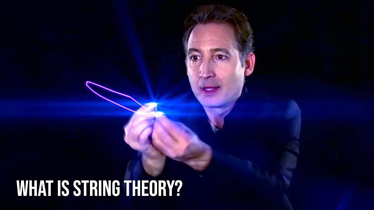 conventional idea says there's nothing inside but string theory says I'll find a little tiny filament a little filament of energy a little string like filament and just like the string on a Violin, I pluck it and it vibrates Creates a little musical note that I can hear the little strings in string theory when they vibrate They don't produce musical notes. They produce the particles themselves so what quark is nothing but a string vibrating in one pattern an electron is nothing but a string vibrating in a different pattern a neutrino Nothing but a string vibrating and
