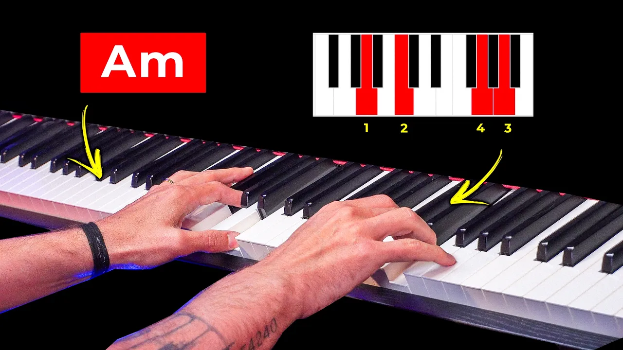 desse vídeo deixar o seu like se você quer um curso Completão de pena e teclado vou deixar o link do meu curso aqui na descrição agora bora ouvir esse padrão de número dois junto com a voz [Música] padrão de número TR a gente vai começar bastante parecido com o padrão número dois então toca tudo junto esquerda direita esquerda direita esquerda só que no quarto tempo agora a gente vai tocar as duas notas de cima do acorde independente de quais sejam juntas e depois a nota de baixo Então fica assim ó um do 3 quatro de