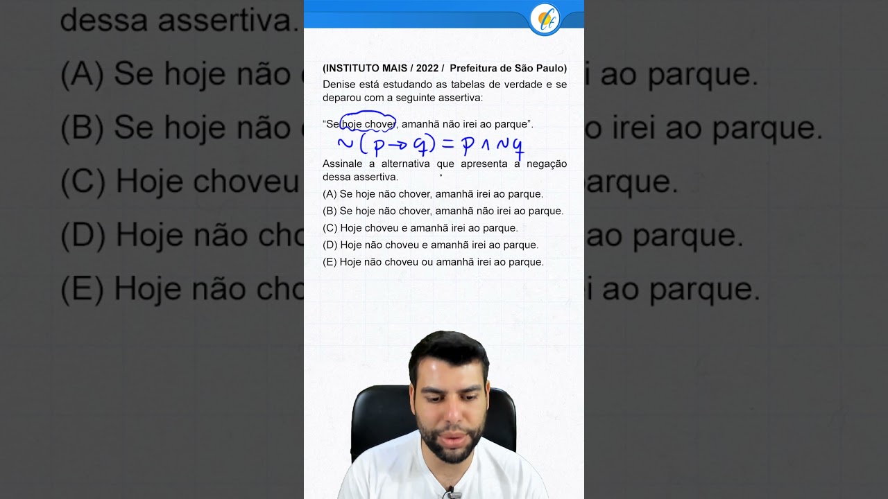 um deles vou levar um deles aliar então não dizer só se você para você pensar nisso quando os dois forem verdadeiro é falso quando os dois forem falso também é foto então vai ser verdade quando for o que só vai ser verdade quando foram de casa foi uma verdade ou uma mentira é a única condição as duas únicas condições ok conectivos lógicos só que você tem que ficar a tenso a um detalhezinho para resolver questões que é a tal da negação de uma proposição e se pode negar aquilo mas o que que é a gente