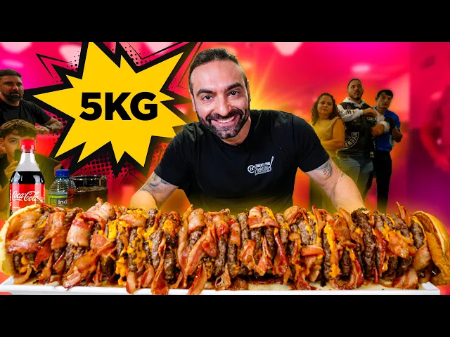 ir pra chapa mais fatias de bacon mais queijo né e tem dois onion Rings aqui na ponta que vem cabe direito na tela meu pratinho aqui para não fazer sujeira vamos começar Então galera TR 2 1 vou mandar aqui a dois de uma vez [Música] Bur tu fum na minha frente jaz um dos Desafios mais difíceis que eu enfrentei aqui em Brasília 5 kg de pura carne e bacon mais de 16.000 calorias começ do em [Música] [Música] do já não era mais uma torre de hambúrguer parecia umeter comecei já não consegui sair comendo muito rápido