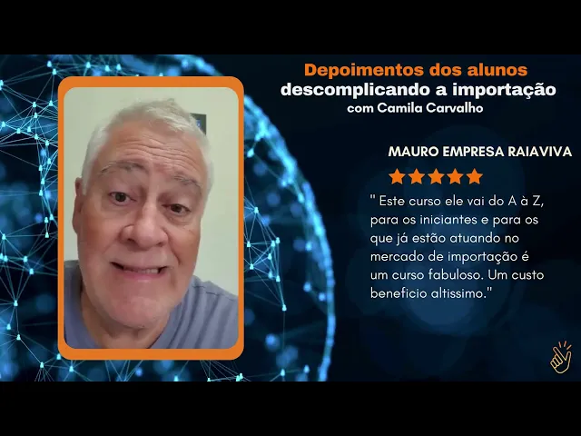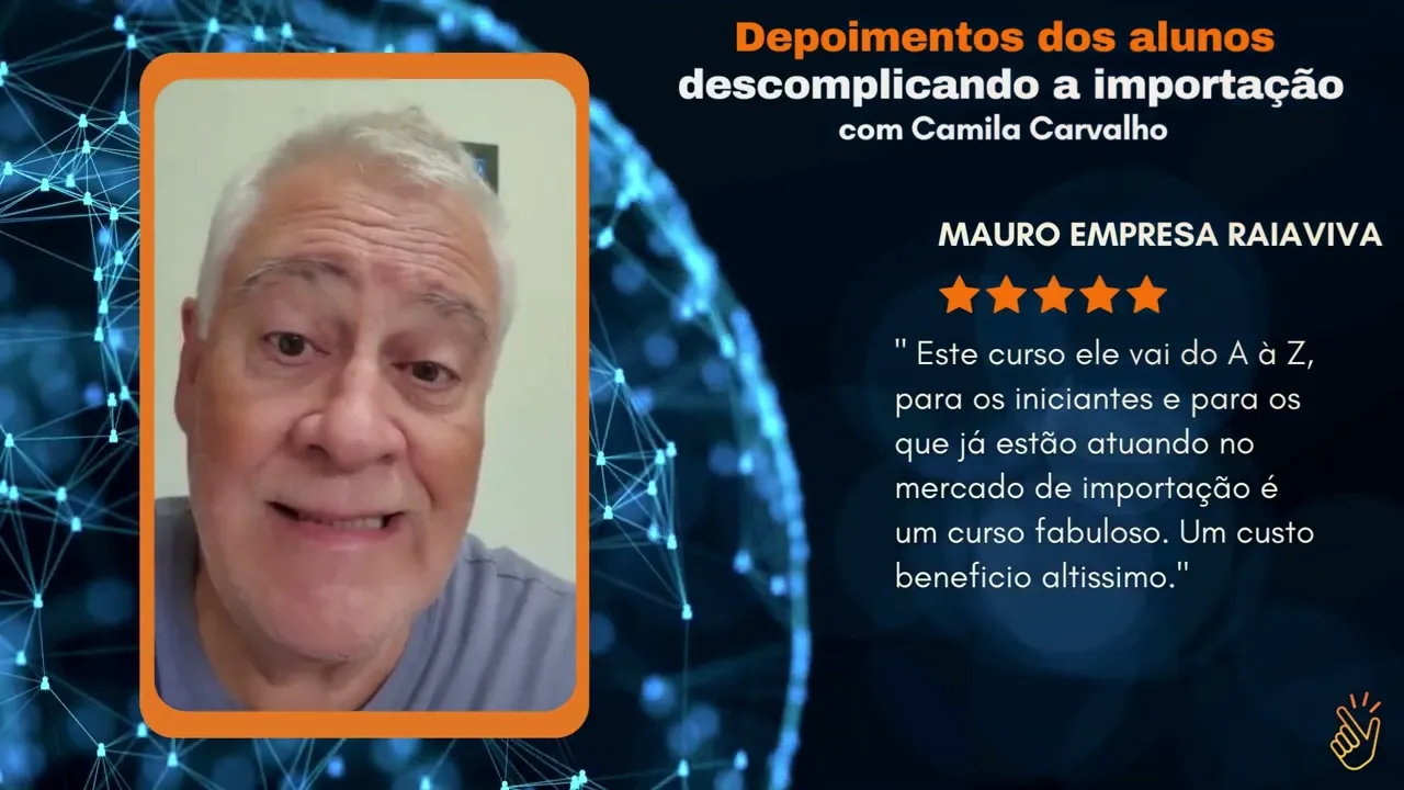 agora vou fazer a segunda importação ainda para mim ainda não estou ainda utilizando o curso para fazer importações para e-comerce mas vou fazer em seguida já é um objeto Camila é uma pessoa extremamente comprometida ela transmite muita segurança pelo conhecimento que ela tem atividade ela não falha nunca está sempre disposta sempre sorrindo Não tem humor e transmitir mesmo para aquelas pessoas que começaram do zero e fazem as mesmas perguntas e as várias e várias vezes as mesmas ela tem uma paciência enorme né então ela é muito comprometida muito profissional e eu tô aqui agora estou