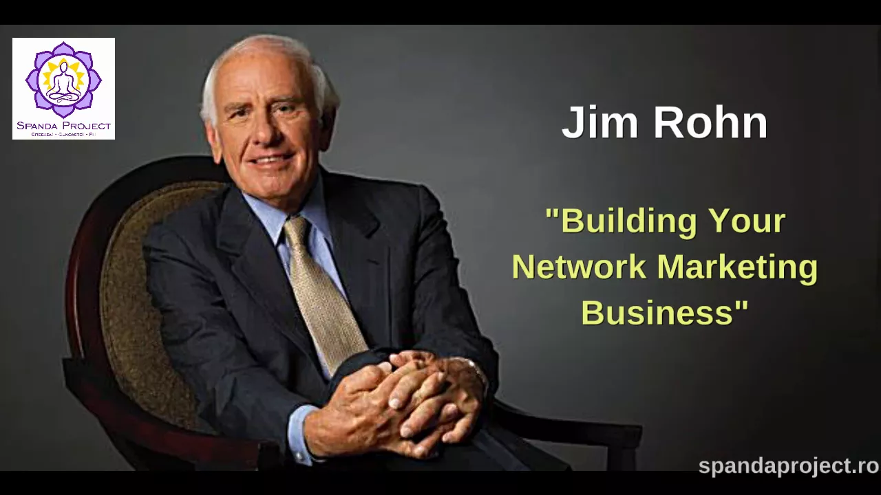 [Music] welcome to building your network marketing business with Jim Rohn mr. own has been hailed over the years as one of the most influential thinkers of our time as well as a major influence to an entire generation of personal development trainers and speakers jim has been described as a master motivator by Mark Victor Hansen a national treasure by Vick Conant one of the most Profound thinkers and mind-expanding individuals of our time by Les Brown and an extraordinary human being and mentor by Anthony Robbins Jim Rohn has been sharing as successful Asif ease-in principles for over